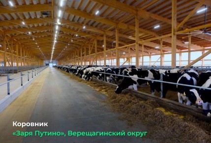 Здесь на предприятии «Заря Путино» реализуется крупный аграрный инвестпроект. Он предусматривает строительство трех очередей комплекса по производству молока на 3700 голов.Первый этап был завершен в 2024 году (возведен коровник на 1115 голов)....