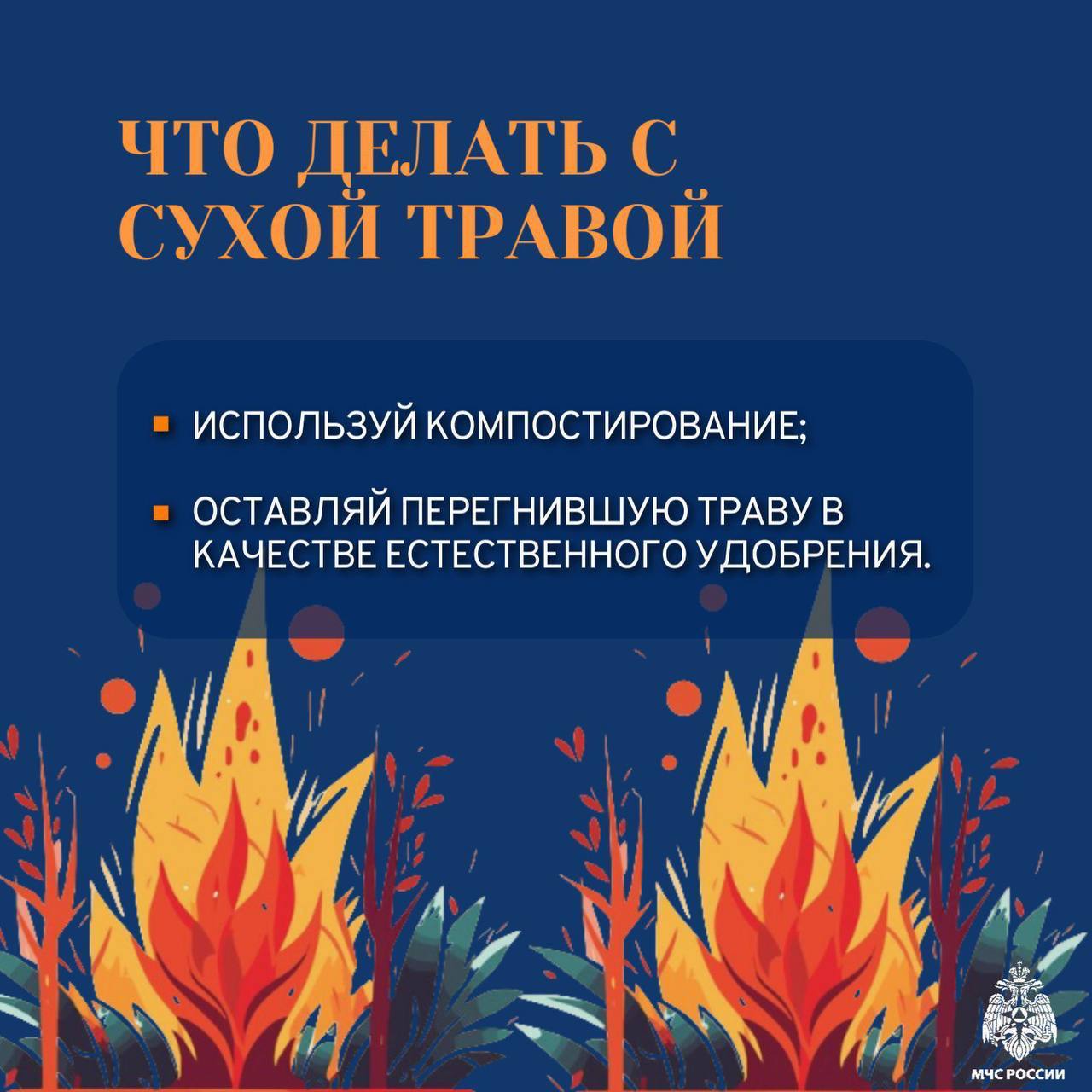 Палы травы запрещены Соблюдай правила пожарной безопасности, не сжигай сухую траву. Читай и делись памятками МЧС России. Подписывайся на МЧС России в Telegram | MAX #ПолезноЗнать