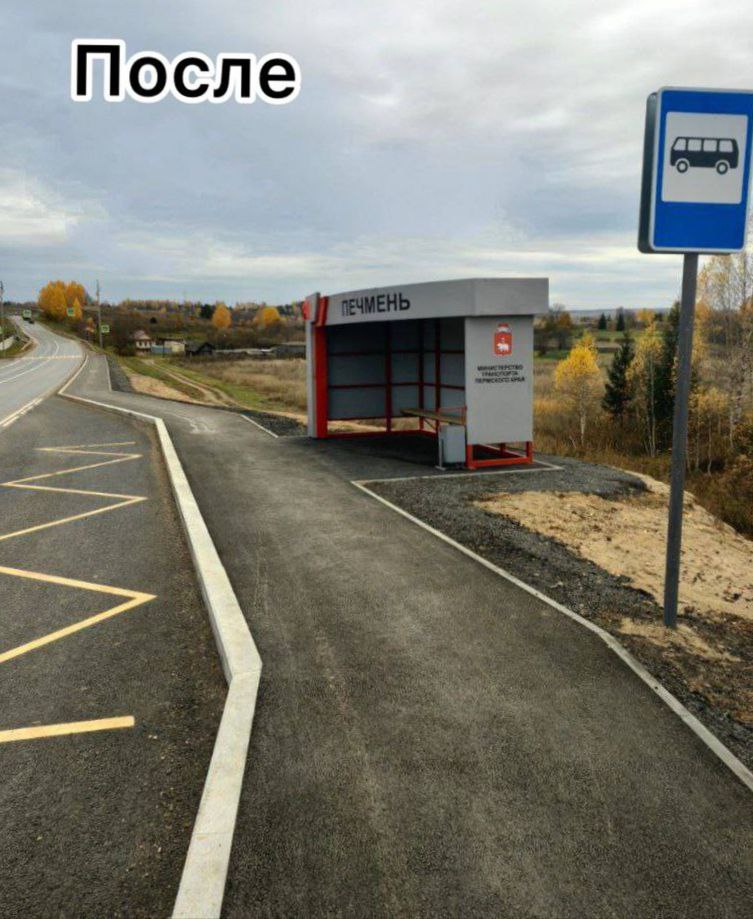 Обустроены остановочная и посадочная площадки, заездной карман, установлен безопасный павильон для пассажиров.