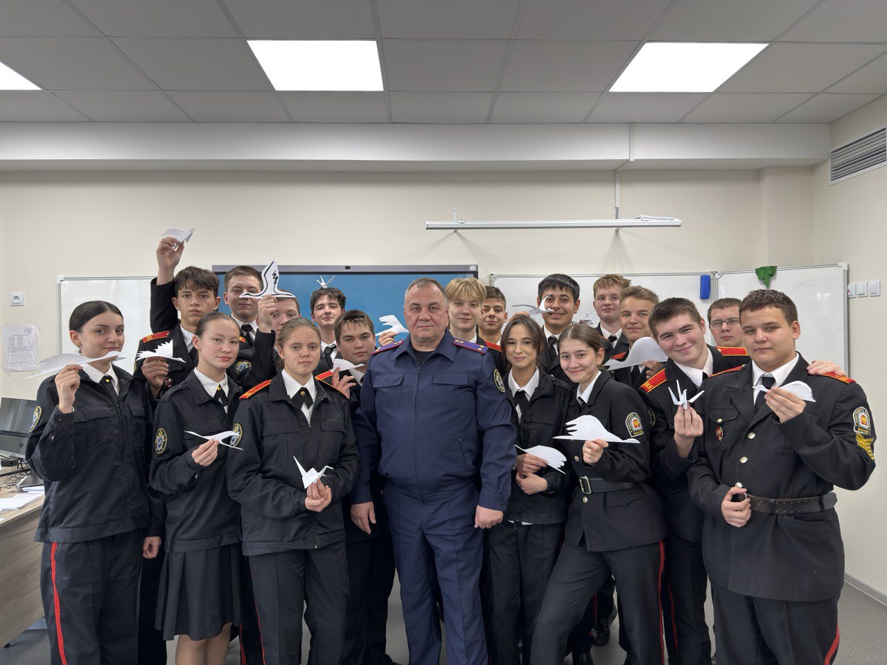 В знак вечной памяти о павших героях офицеры регионального ведомства и кадеты подшефного образовательного учреждения в МАОУ "Пермская кадетская школа № 1" Пермский кадетский корпус имени генералиссимуса А.В. Суворова" создали белых журавликов из бумаги. Каждая хрупкая фигурка несёт в себе огромную благодарность и скорбь по тем, кто отдал жизнь за Отчизну.