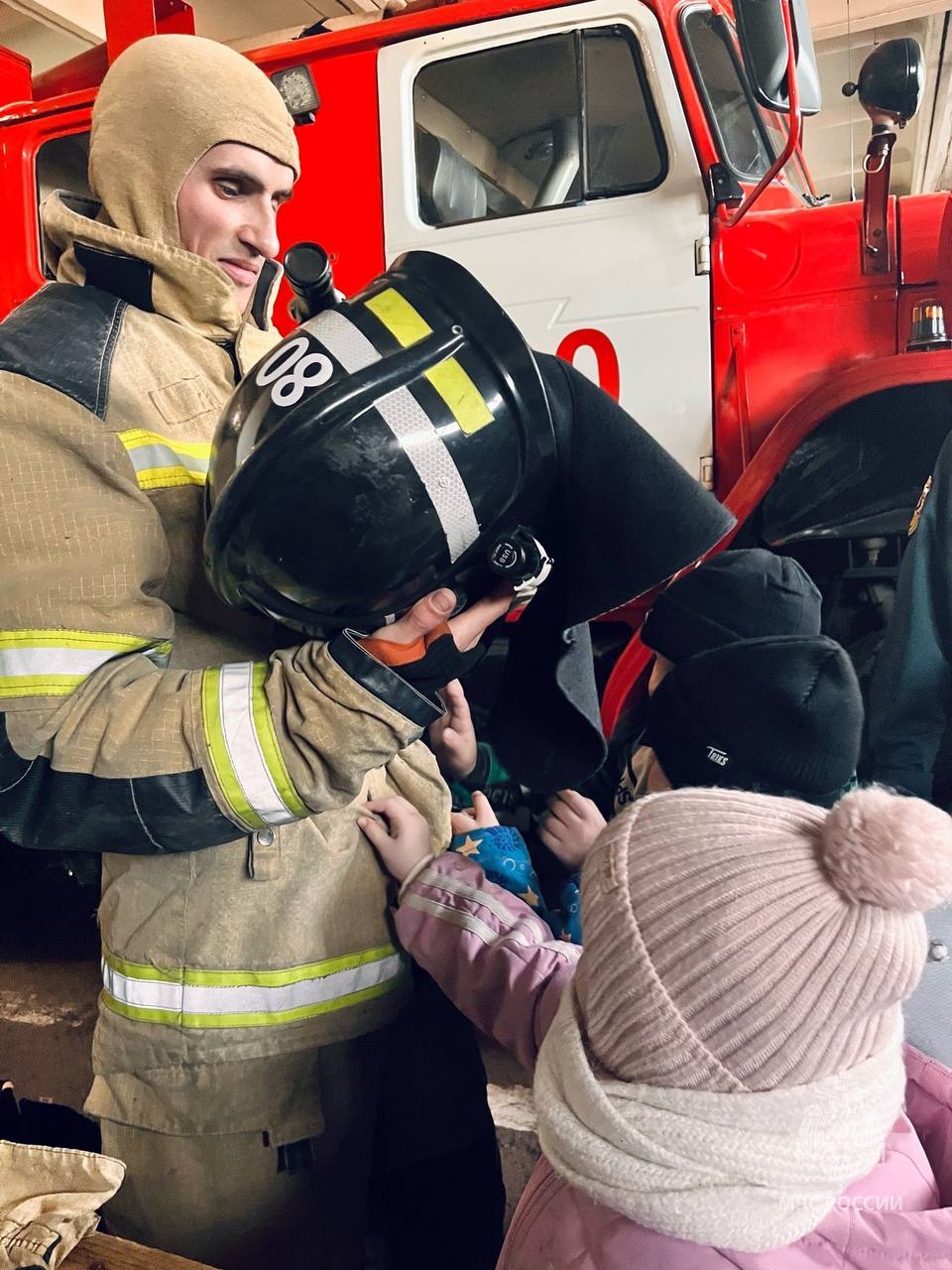 Малыши не только знакомятся с работой огнеборцев, осматривают технику и пробуют себя в роли пожарных, но и получают необходимые знания о правилах поведения в случае пожара.