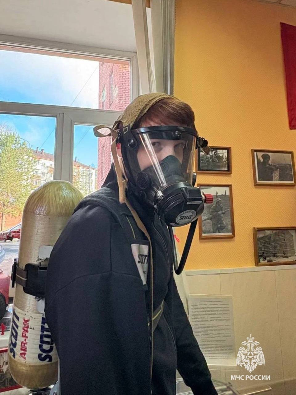 Особый восторг вызвала практическая часть: дети потренировались в надевании противогаза, самоспасателя и дыхательного аппарата.