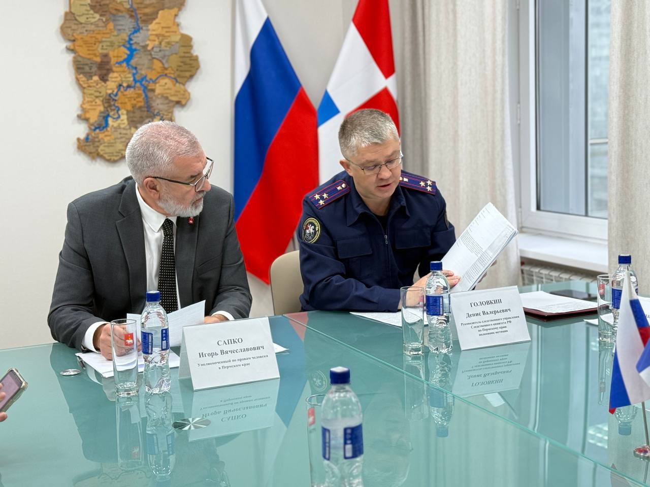 27 ноября 2025 года руководитель следственного управления Следственного комитета Российской Федерации по Пермскому краю Денис Валерьевич Головкин и Уполномоченный по правам человека в Пермском крае Игорь Вячеславович Сапко провели совместный прием граждан по вопросам защиты их прав и законных интересов.