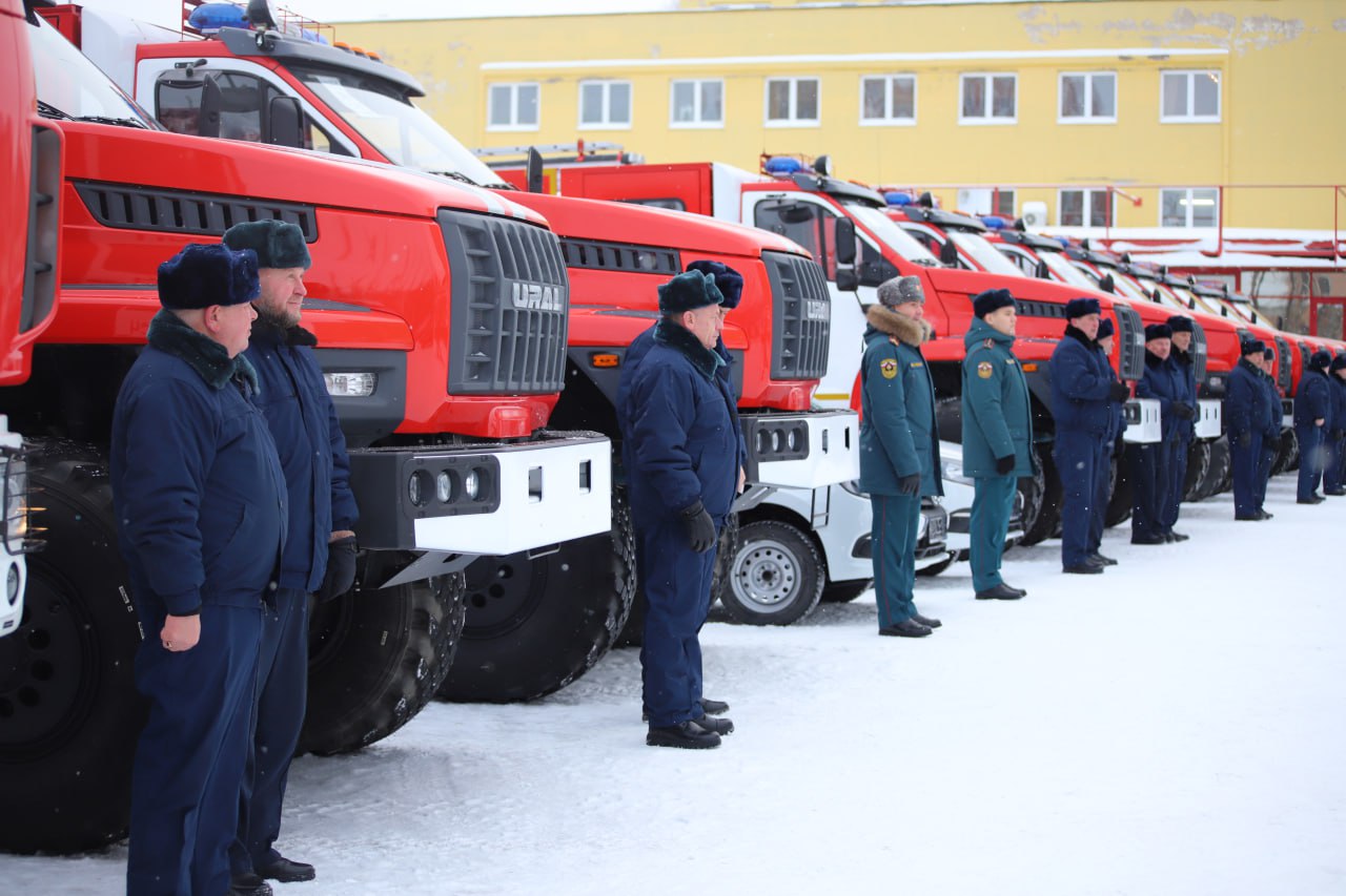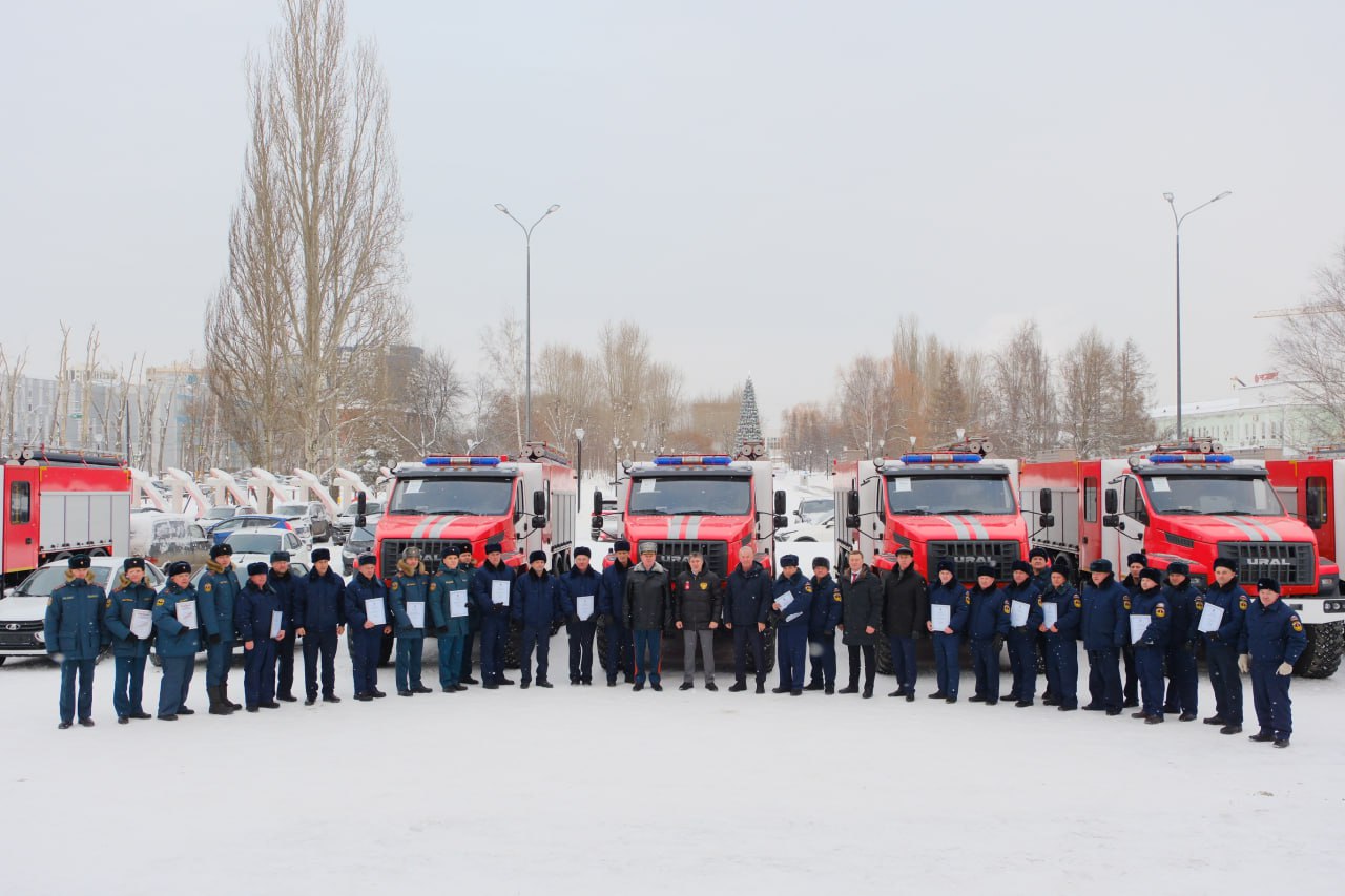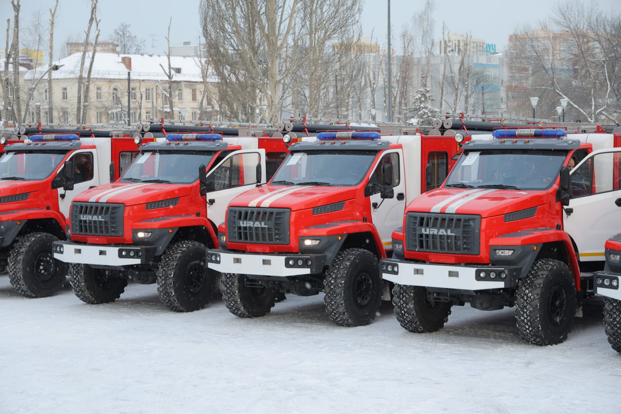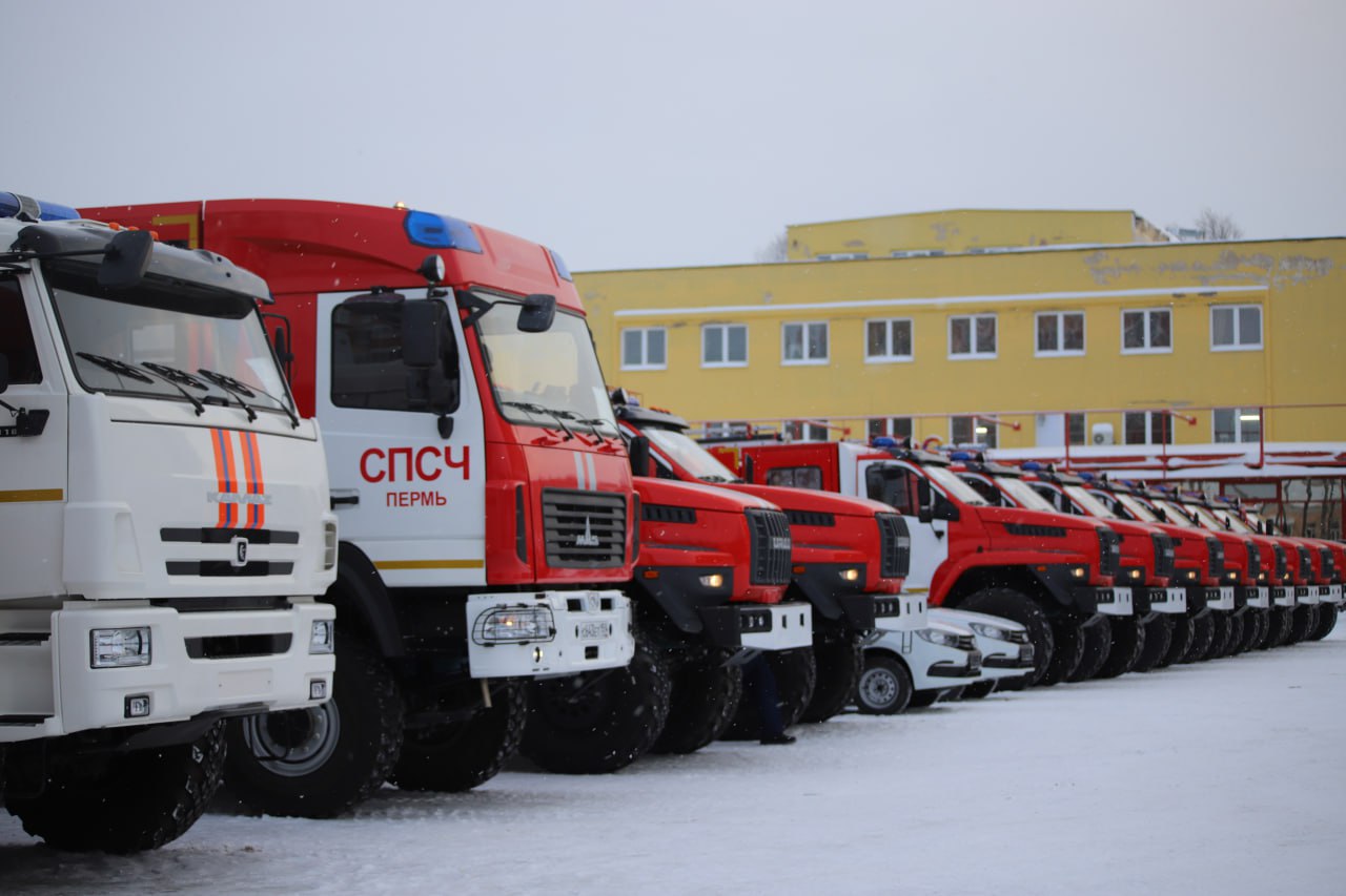 Губернатор Пермского края Дмитрий Махонин и начальник Главного управления МЧС России по Пермскому краю генерал-майор внутренней службы Александр Урусов вручили ключи и сертификаты от 17 единиц новой техники начальникам пожарно-спасательных и пожарных частей региона.