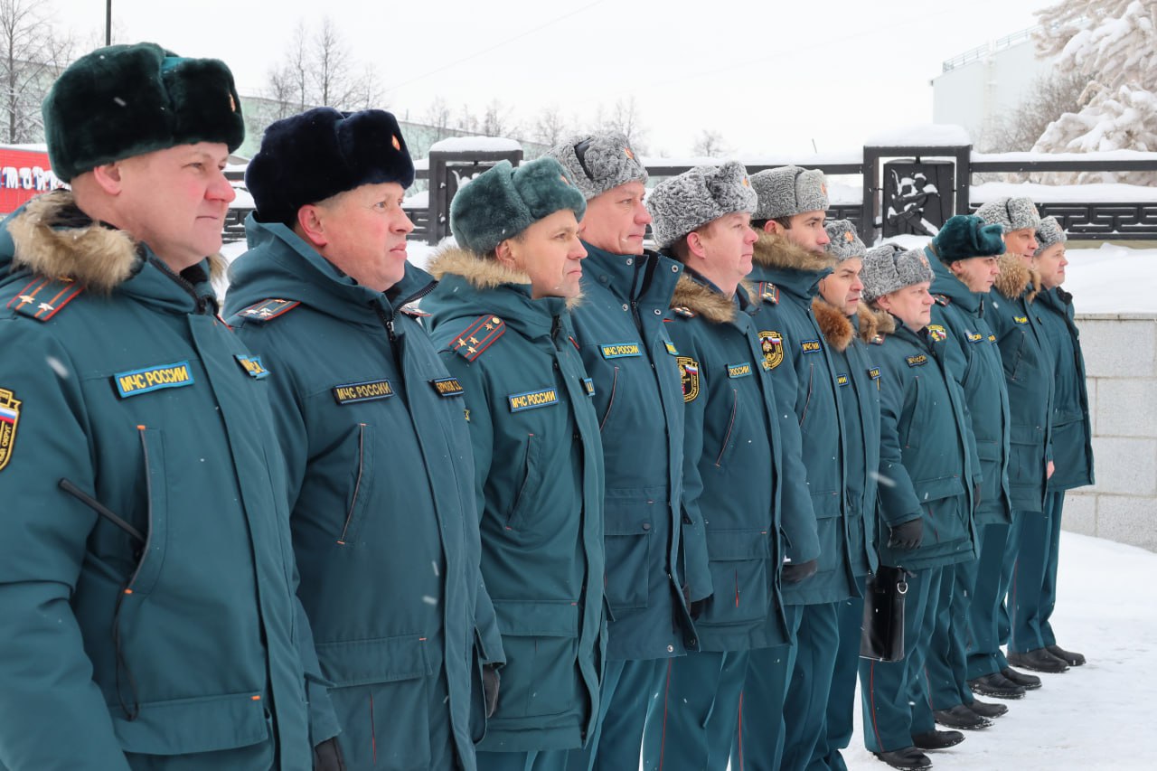 Перед Пермским городским дворцом культуры имени М.И. Калинина был построен личный состав территориального пожарно-спасательного гарнизона Пермского края, а также спецтехника, задействованная в службе.