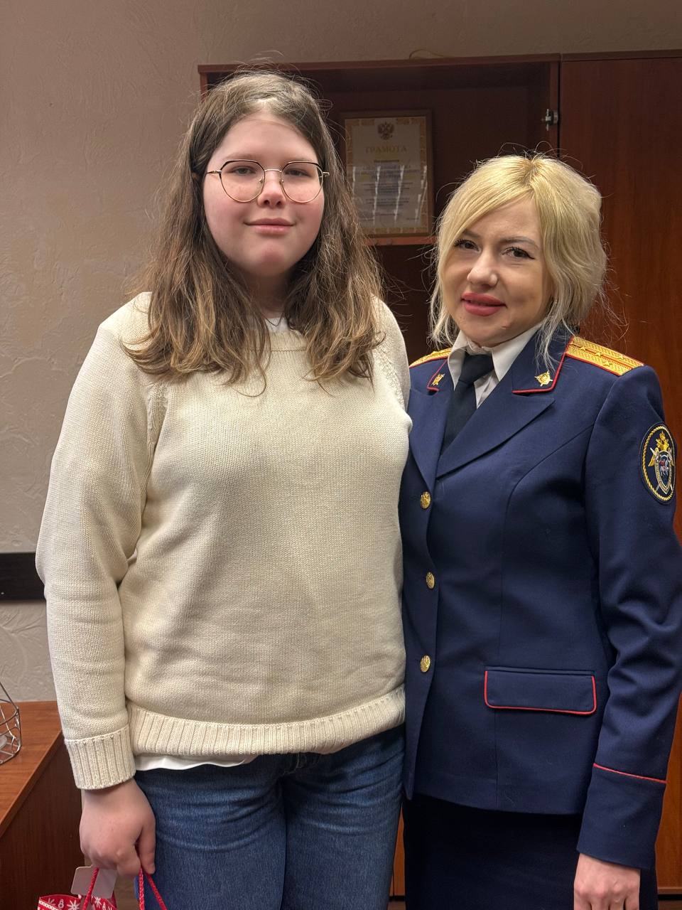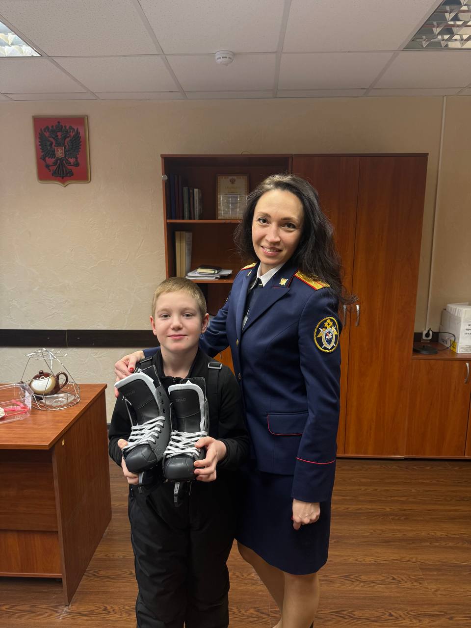Заместитель руководителя Екатерина Царева и помощник следователя Екатерина Карпова исполнили новогодние мечты подростков, которым особенно важна поддержка. Екатерина Царева вручила 17-летней Ульяне сертификат в бассейн и сладкий подарок, а Екатерина Карпова подарила 9-летнему Кириллу хоккейные коньки.