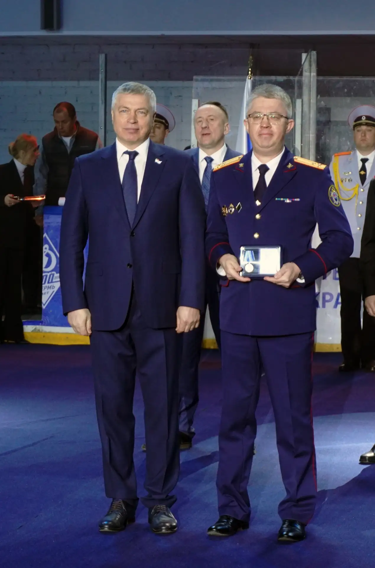 Открытие турнира началось с награждения заслуженных спортсменов-динамовцев и деятелей, внесших вклад в развитие динамовского движения. Им вручены памятные и нагрудные знаки, почетные и юбилейные медали, почетные грамоты и благодарности. За большой вклад в развитие динамовского движения, многолетнюю и плодотворную работу по развитию физической культуры и спорта председатель Общественно-государственного объединения «Всероссийское физкультурно-спортивное общество «Динамо» генерал-лейтенант Анатолий Гулевский наградил руководителя следственного управления СК России по Пермскому краю Дениса Головкина юбилейной медалью «100 лет Пермскому Обществу «Динамо».