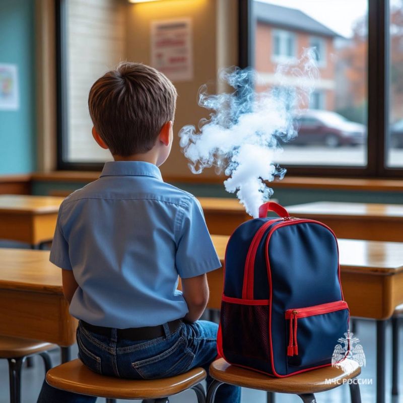 Во время проведения урока учитель обратила внимание на необычные звуки, напоминающие свист, а затем заметила появление белого дыма, который исходил из школьного портфеля одного из учащихся. Помощь прибывших огнеборцев МЧС России не понадобилась...