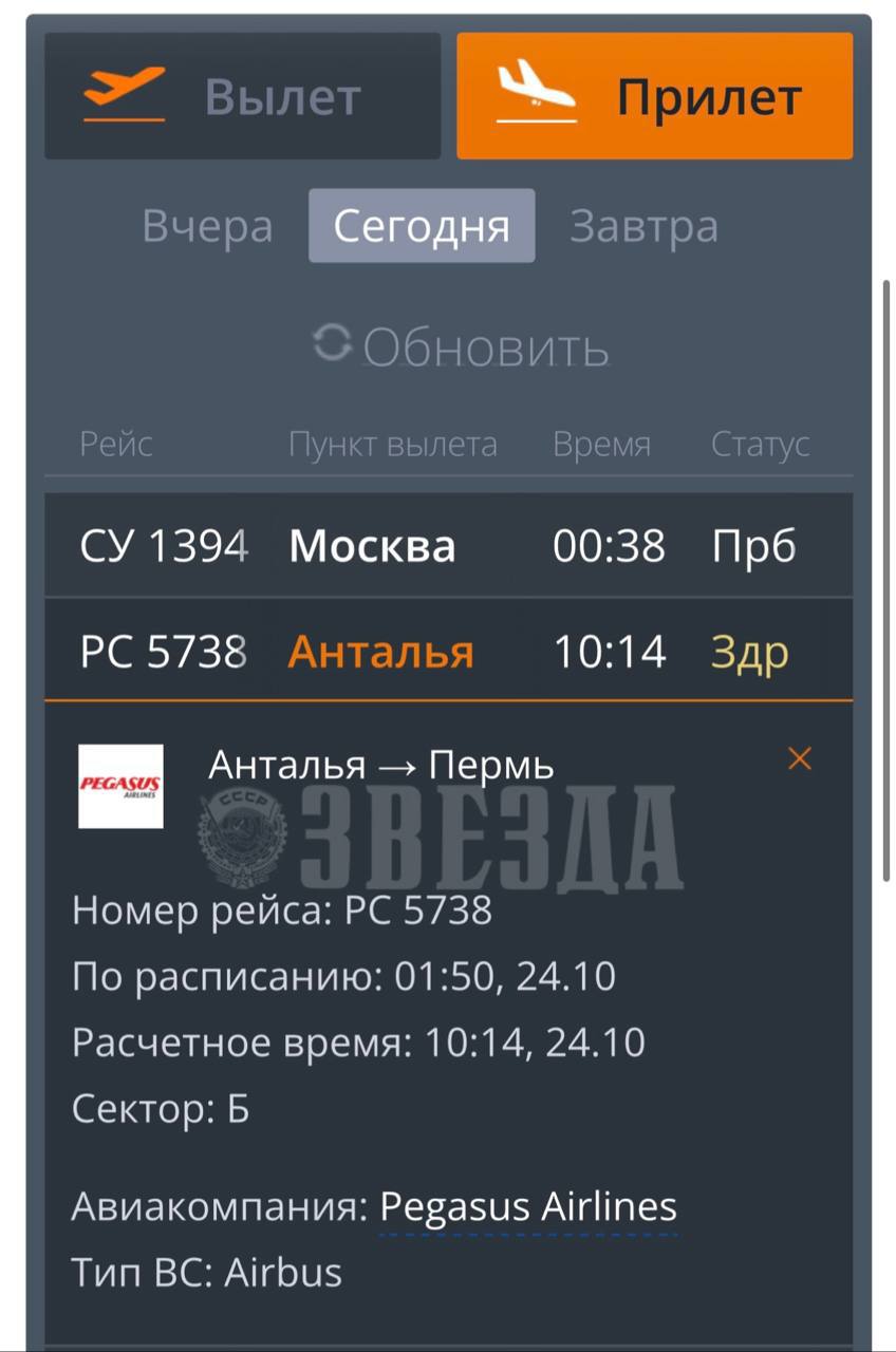 Ночной рейс из Турции в Пермь, запланированный на 01:50, прилетит лишь в 10:14, указано на онлайн-табло международного аэропорта «Пермь».