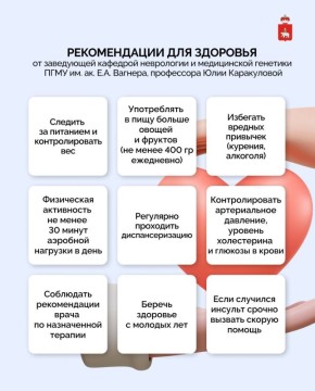 Сегодня отмечается Всемирный день борьбы с инсультом. Профессор и заведующая кафедрой неврологии и медицинской генетики ПГМУ им. ак. Е.А. Вагнера Юлия Каракулова дала несколько рекомендаций, что нужно делать уже сейчас, чтобы предотвратить...