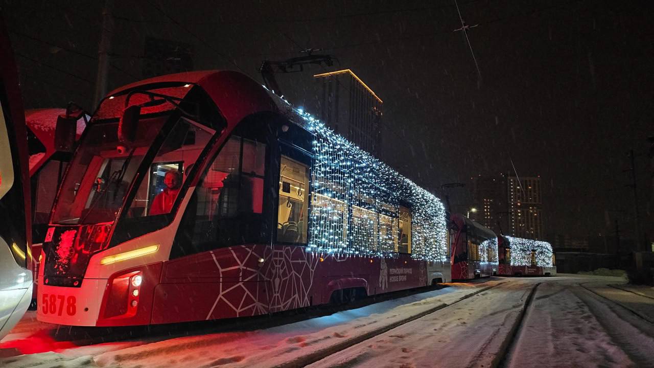 Новогодние трамваи вышли на маршруты Перми
