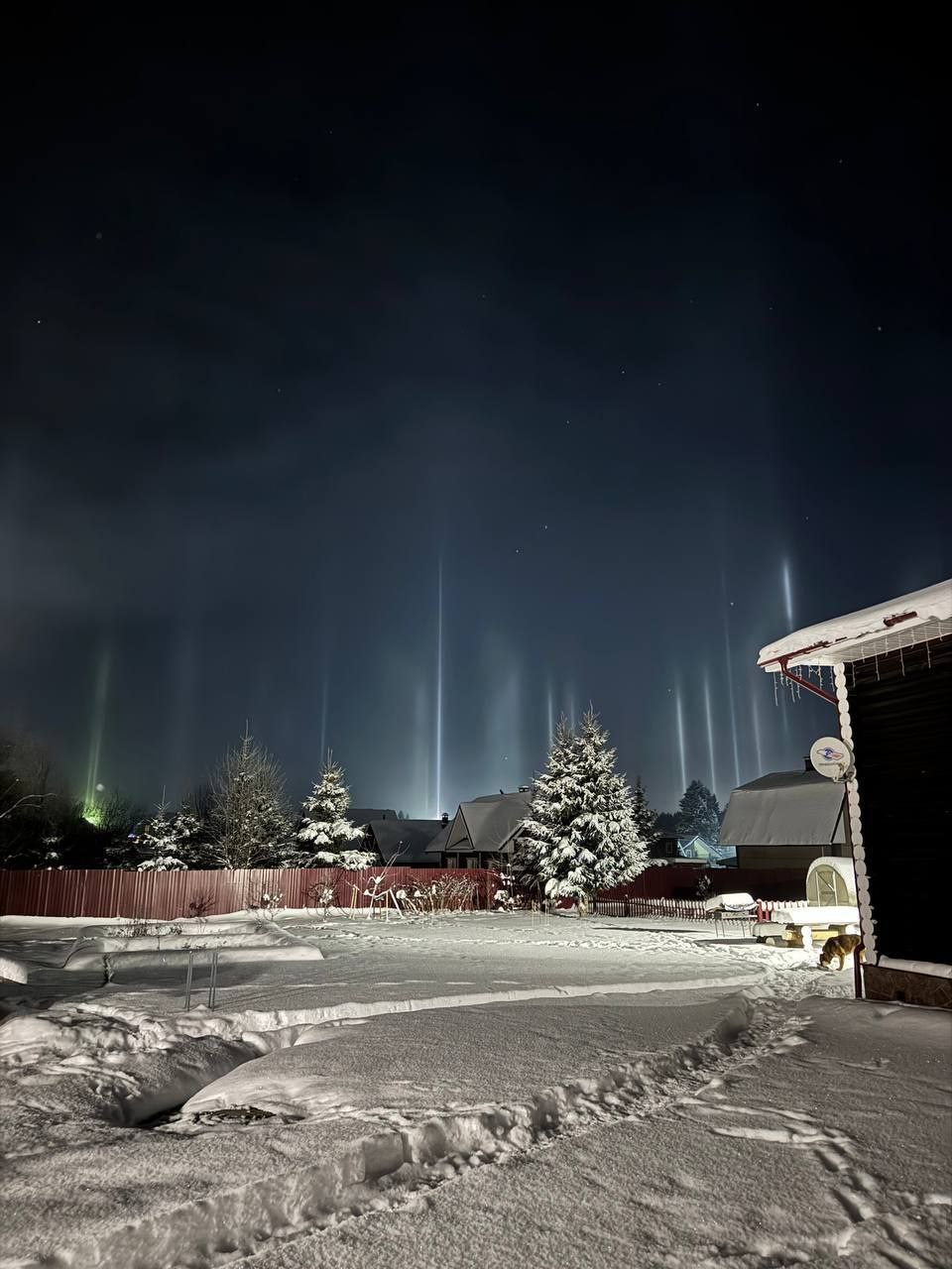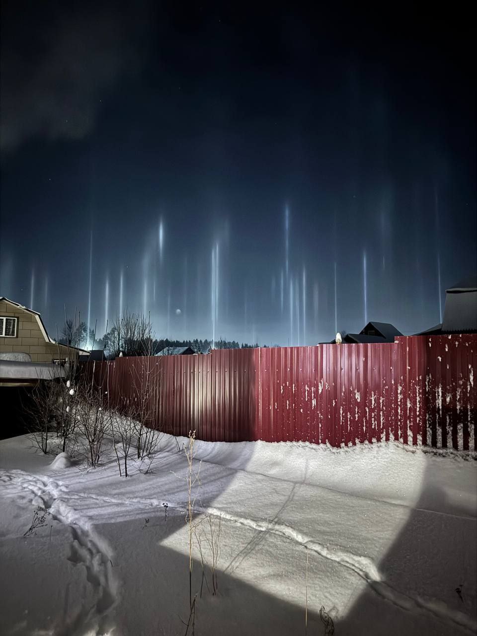 Оптическое явление возникает из-за отражения света от плоских шестиугольных кристаллов льда, взвешенных в морозном воздухе.