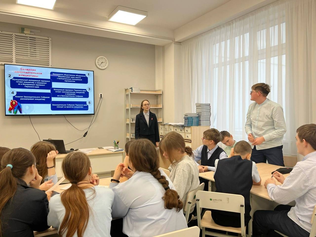 Ключевой темой занятий стала деятельность молодежных парламентов в Прикамье. Тематика уроков выбрана в честь объявления города Перми Молодежной столицей России – 2025.