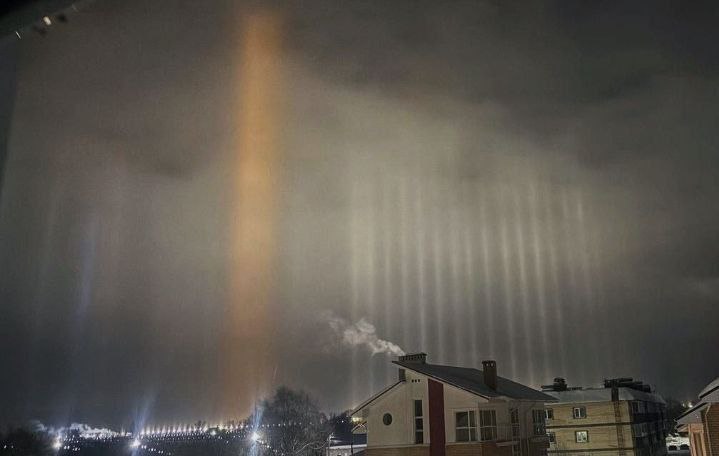 А вот эту красоту заметили в небе над Култаево. Не менее прекрасное оптическое явление — световые столбы!