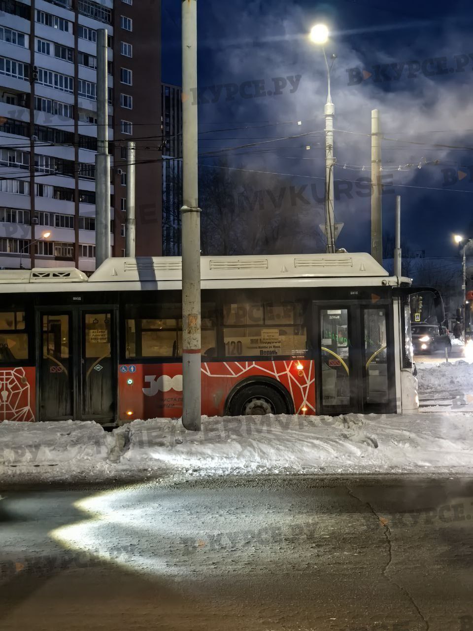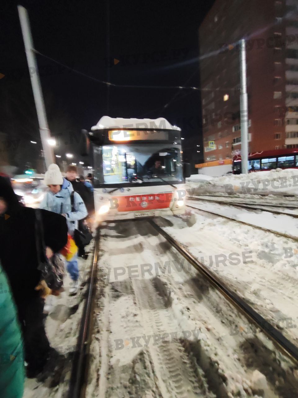 Автобус №120 подумал, что он трамвай и застрял на путях
