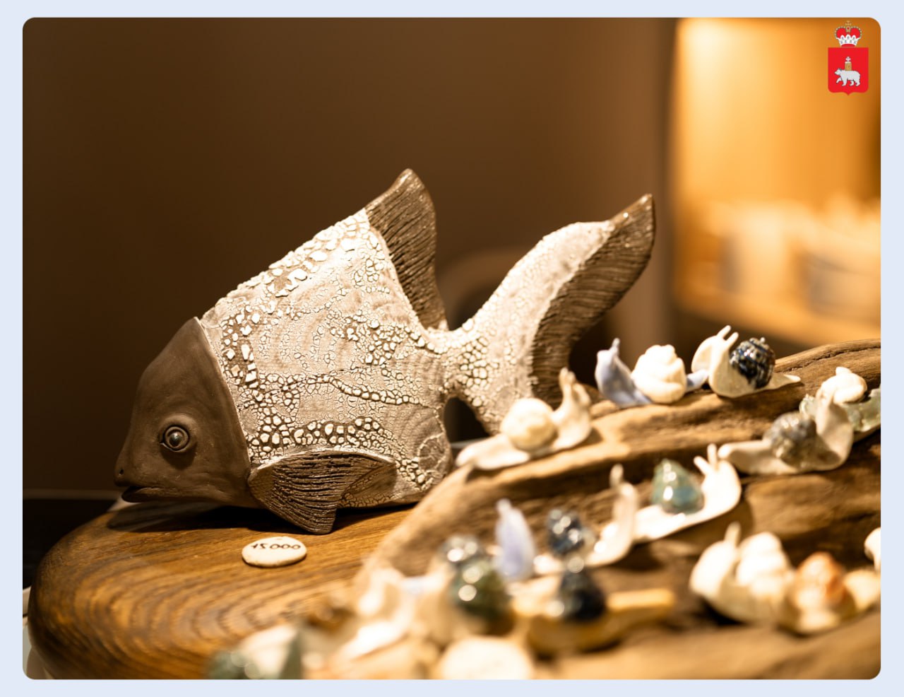 Ещё на выставке пермяки представили одну из самых масштабных экспозиций авторской керамической посуды и предметов интерьера с мотивами Пермского периода и выполненные в технике молочного обжига.