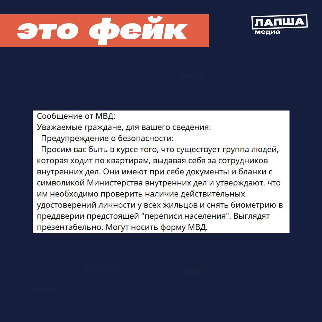 В чатах Пермского края распространяется «предупреждение», что «сотрудники полиции» якобы ходят по квартирам, снимают биометрические данные (отпечатки пальцев) и совершают кражи.