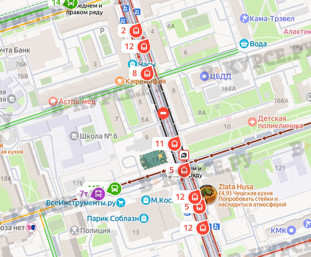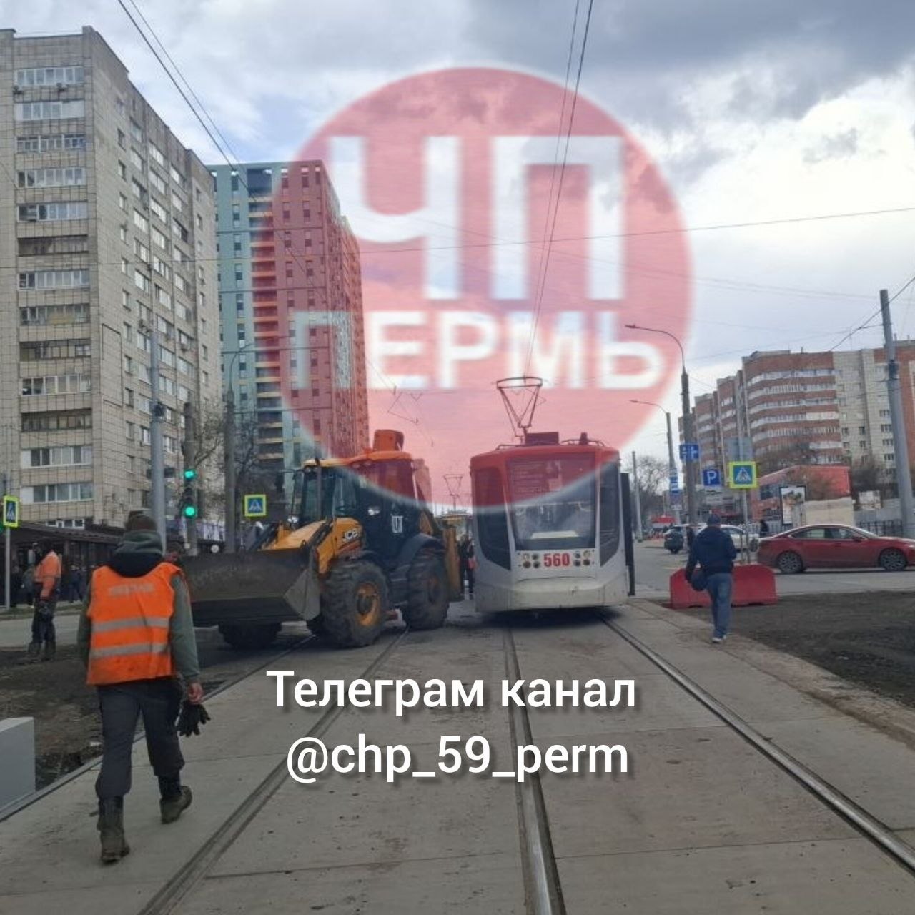 Авария с трактором и трамваем №5 на перекрестке Борчанинова и Екатерининской