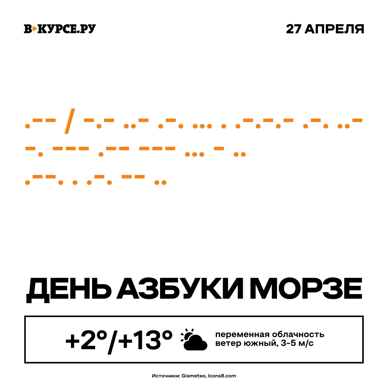 Ежегодно 27 апреля в День рождения Сэмюэла Морзе отмечают день создания одноимённой системы кодирования символов. Сможете прочитать, что мы зашифровали?