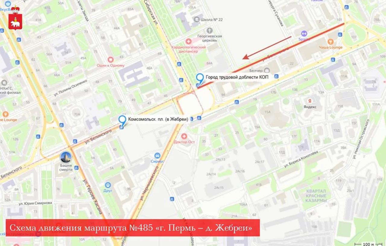 1 мая с 5:00 до 23:59 вводится временная схема движения маршрута №485 «г. Пермь – д. Жебреи».