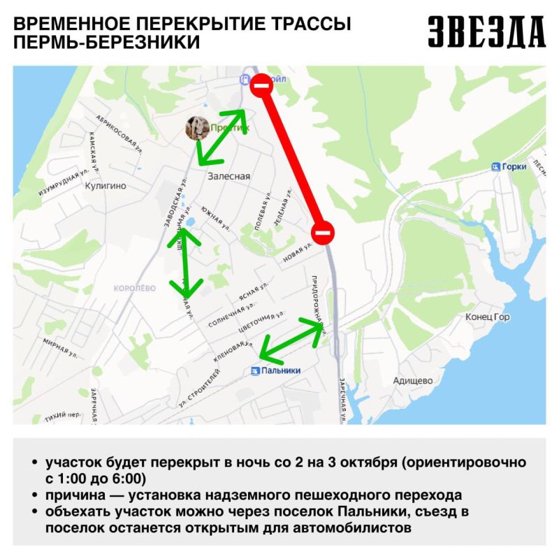 В ночь с 2 на 3 октября, ориентировочно с 1:00 до 6:00, будет полностью запрещено движение по трассе Пермь — Березники в связи с установкой надземного пешеходного перехода.Объезд возможен через Пальники, съезд останется...