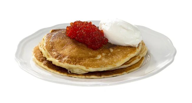 - Вторник: Приготовьте пышные блины на кефире. Они будут слегка кисленькими и отлично подойдут под сыр или сметану с икрой.