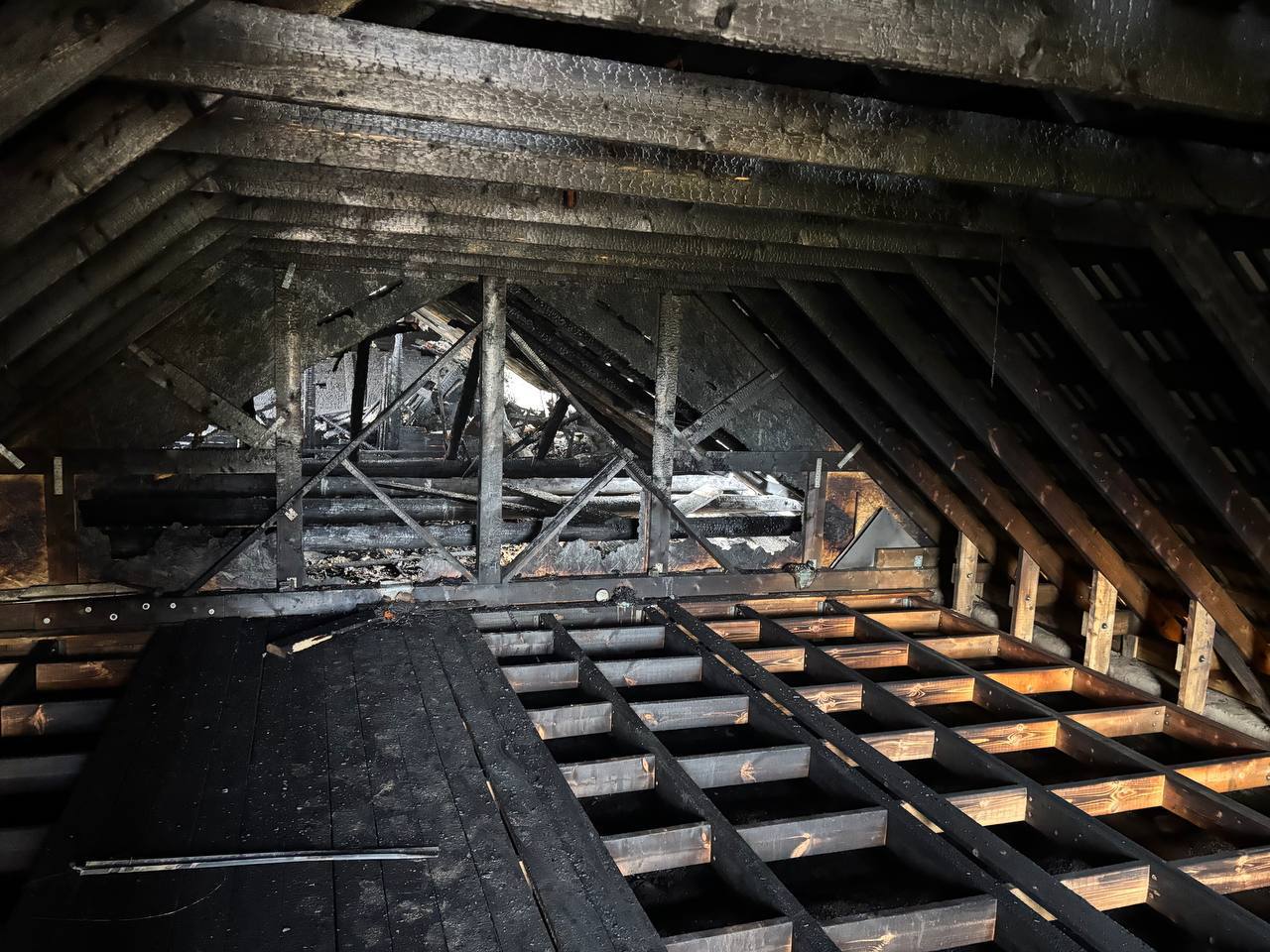 После осмотра взрывотехником и следственными органами совместно с МЧС и владельцами был открыт доступ в дом. Из-за риска обрушения чердака работы проводились осторожно.