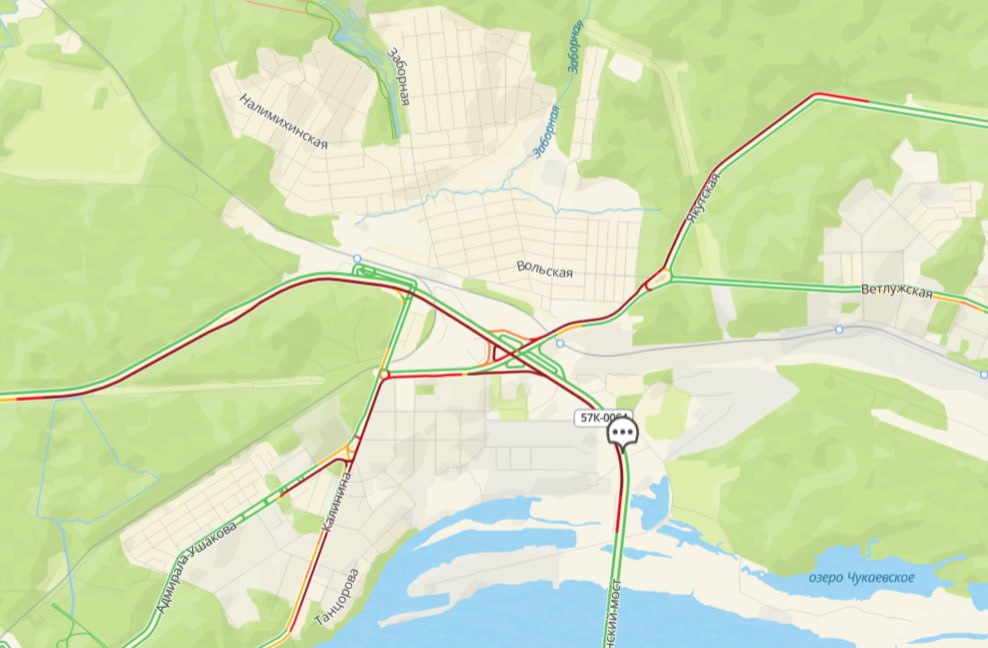 Развязка из Закамска/Краснокамска в центр Перми встала в пробку