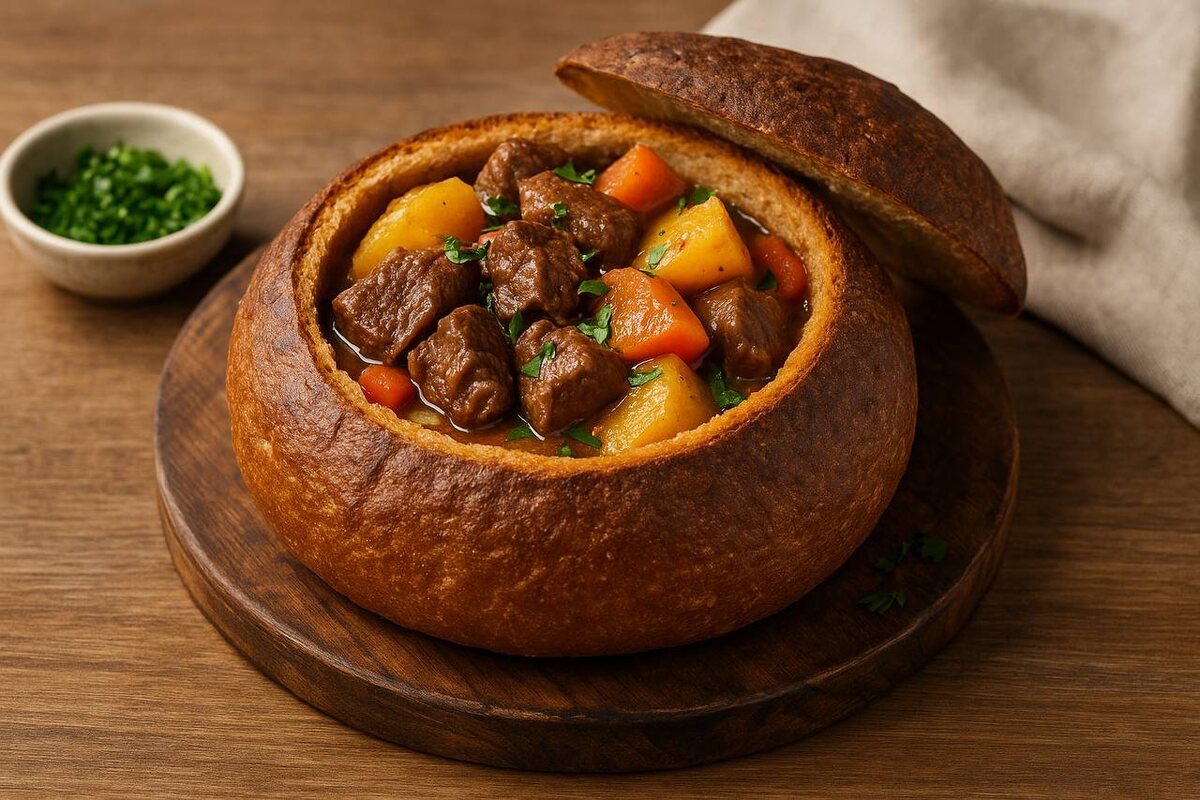 Идея использовать хлеб как съедобную «посуду» давно завоевала популярность в различных кухнях мира. Супы и рагу в хлебных булках — от венгерского гуляша до чешской ухи. Но теперь пришло время вывести жаркое на новый уровень, сочетая классическое блюдо с хрустящей корочкой. На выходе получаем не просто сытную еду, а настоящее произведение кулинарного искусства, полное тепла и уюта.