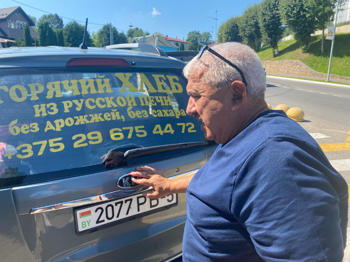 Среди разнообразных ярких прилавков внимание привлекла машина KIA с надписью "Горячий хлеб". Владелец автомобиля, Михаил, представлялся как "Мишаня". В этот момент он как раз упаковывал ароматные "кирпичики" черного хлеба для клиентки, и не мог оставить равнодушными ценителей домашней выпечки.
