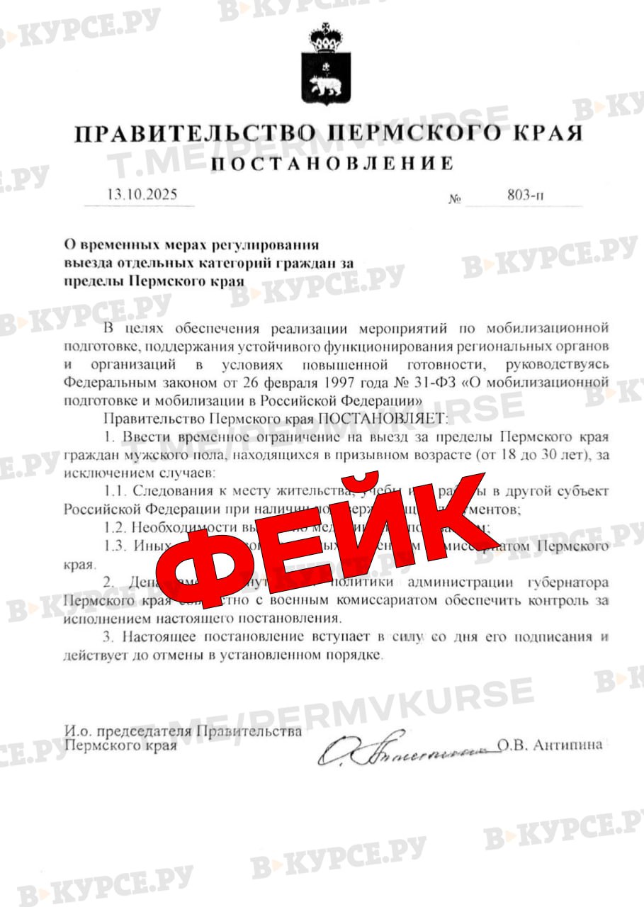 Фейк: В Пермском крае ввели ограничение на выезд для мужчин призывного возраста