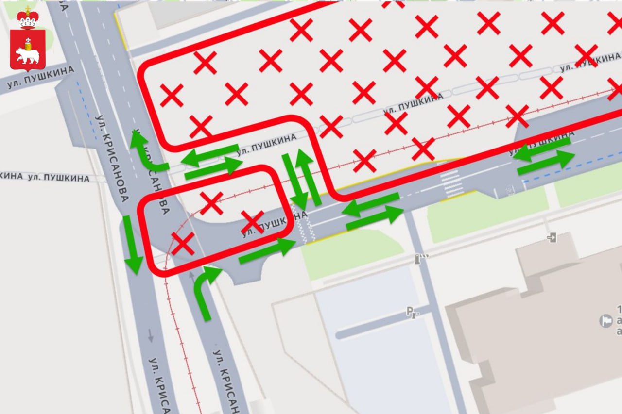 Объезд будет организован по построенному участку дороги на ул. Пушкина – показали его на схеме.