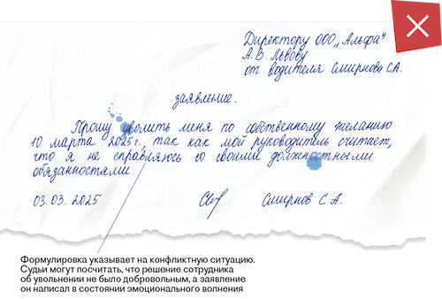 - Недостаток добровольного волеизъявления. Пересылка документа третьими лицами не может служить доказательством истинного желания работника покинуть компанию.