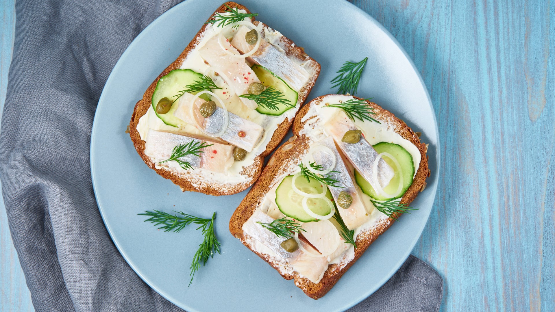 К новогоднему столу часто подают селедку под шубой. Но вместо нее можно приготовить вкуснейшую закуску с рыбой, на которую уйдет куда меньше времени. Возьмите на заметку рецепт бутербродов с сельдью и сырной намазкой.