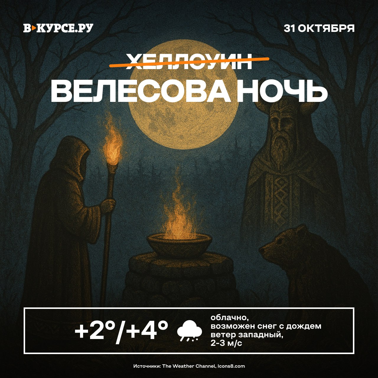Сегодня в ночь с 31 октября на 1 ноября празднуем наш ответ Хеллоуину — Велесову ночь!