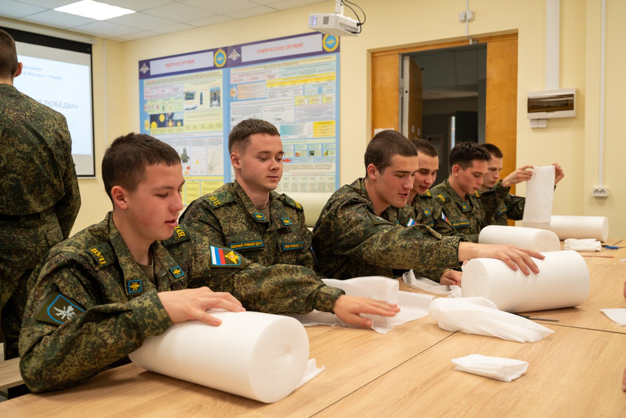 Кроме того, студенты обучаются изготовлению продукции военного назначения. Уже начато производство нашлемников и противодроновых одеял, которые также отправятся на фронт.