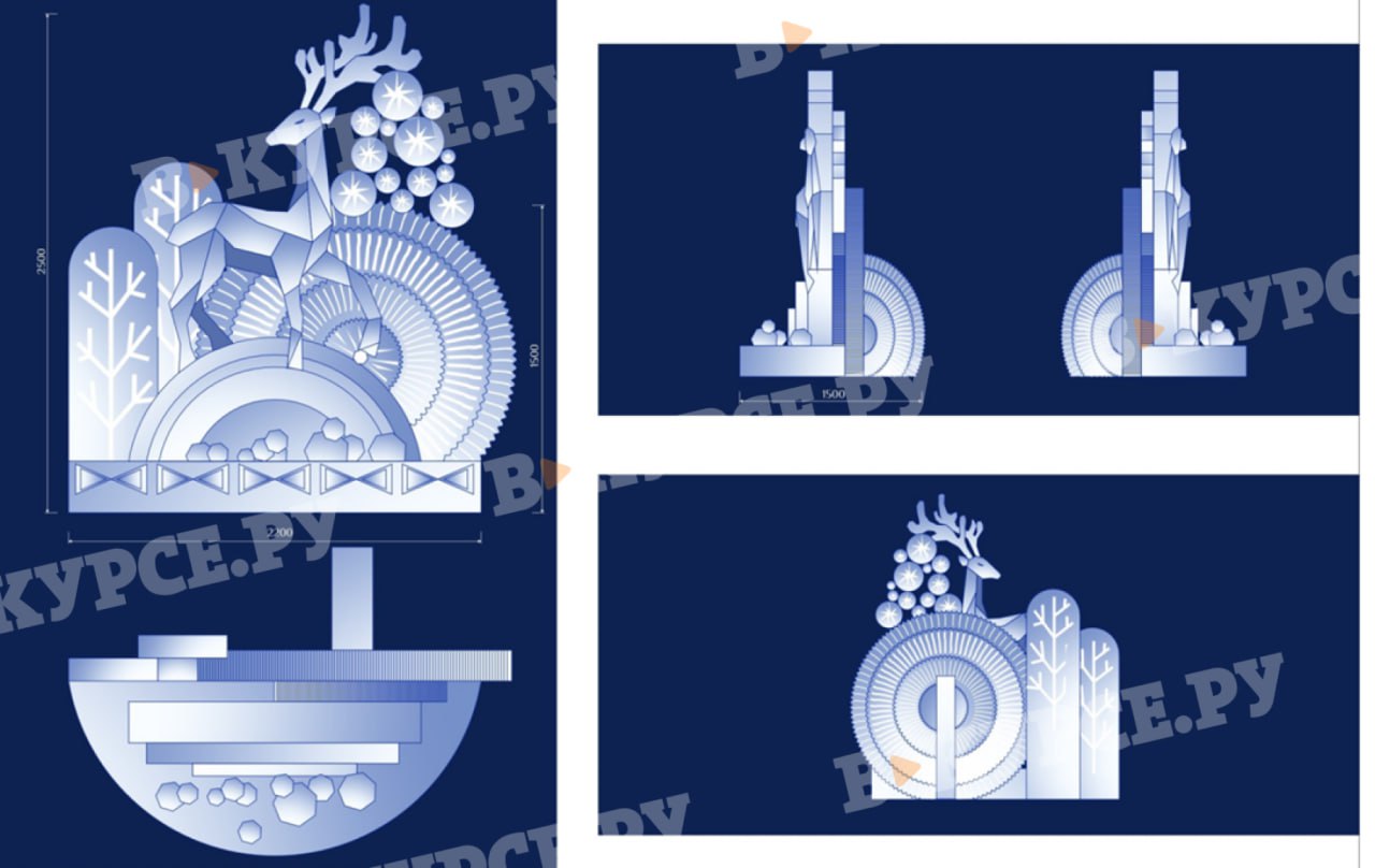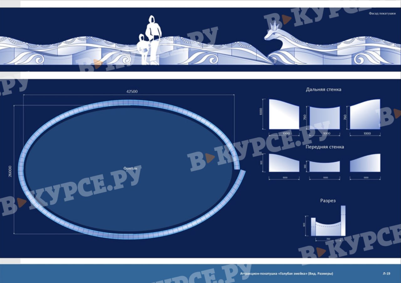 В городке будут разные горки высотой от 1 до 3 метров, покатушка «Голубая змейка», появятся скульптуры «Кудым-Ош», «Серебряное копытце», «Хозяйка Медной горы», «Серая шейка». Всего по техзаданию предусмотрено 11 ледовых объектов.