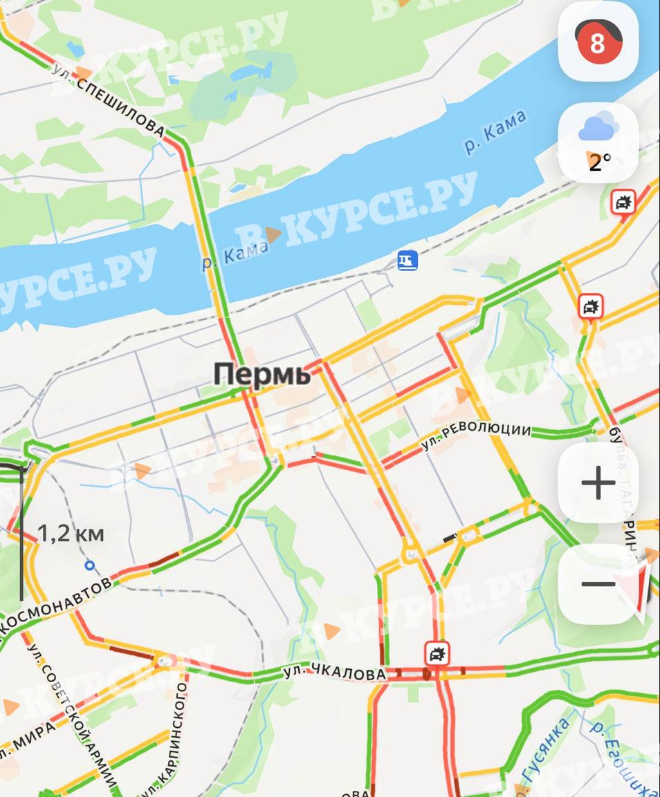 Также на карте отмечено много ДТП, а транспорт отстает от расписания более чем на 20 минут.