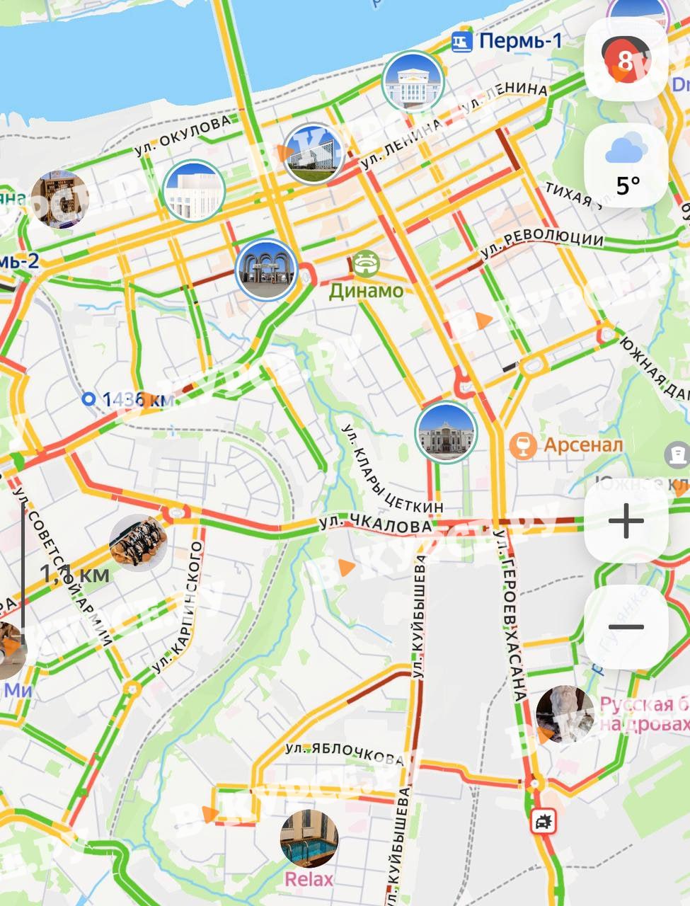 На карте отмечено сразу два ДТП на перекрестках по улице Революции. Кроме того, в городе пробки, а отставание маршрутов составляет более 15 минут, сообщает дептранс.