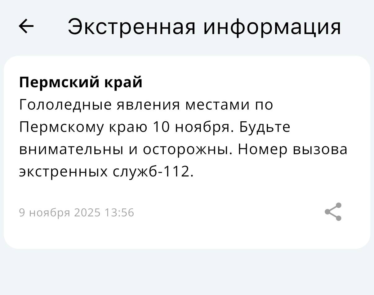 Гололёд ожидается 10 ноября в отдельных районах Прикамья