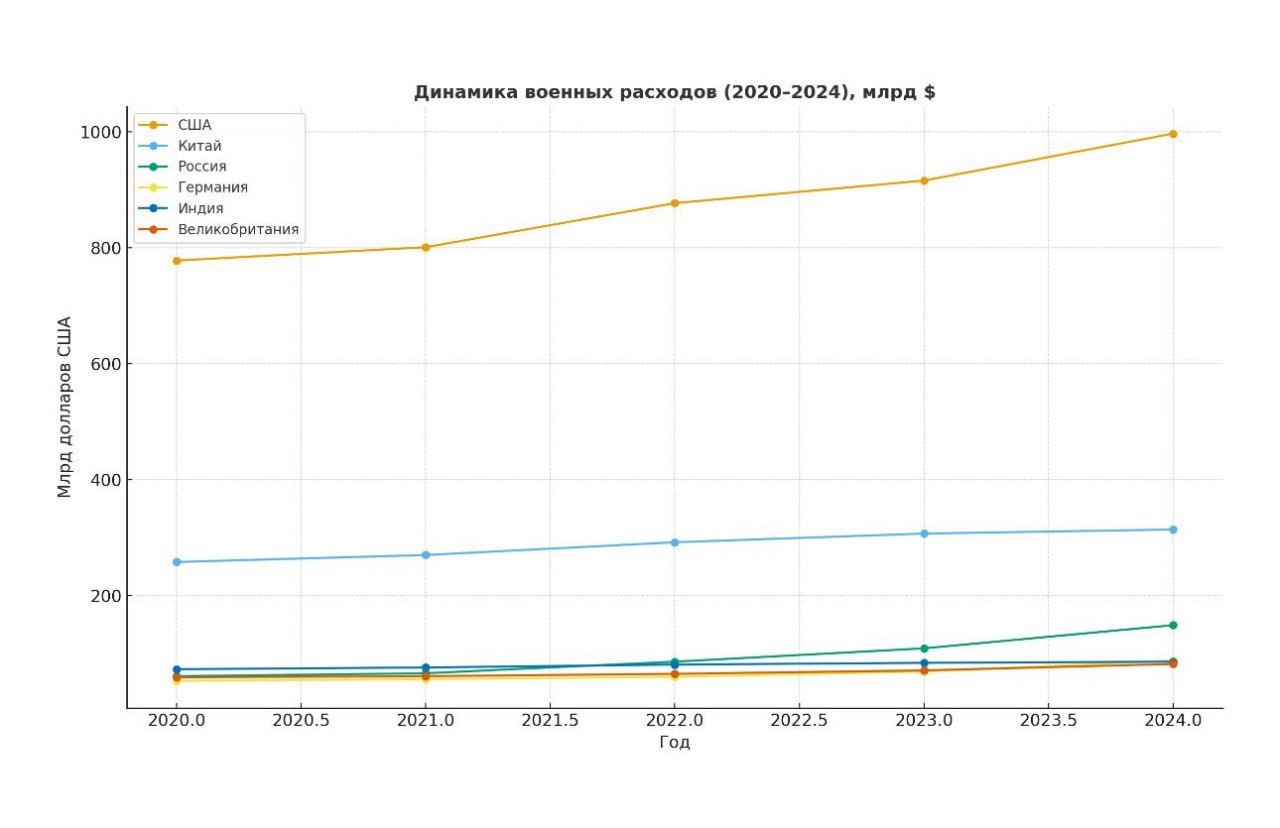 При этом разные страны увеличивают расходы на разные виды перевооружений. Так, США вкладывают $895 млрд в этом году на гиперзвук, ПРО, подлодки и ИИ — приоритеты новой обороны. Китай наращивает бюджет на 7,2 %, делая ставку на военно-морские силы и спутниковые системы. Россия выводит оборонку в отдельный экономический контур — 15,5 трлн рублей ($165 млрд ), около 7 % ВВП.