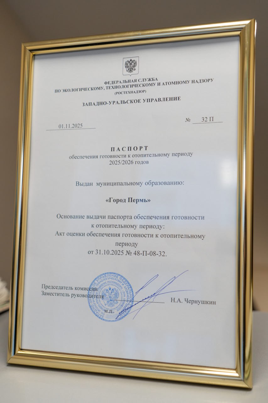 Городская комиссия провела плановую оценку обеспечения готовности теплоснабжающих организаций, управляющих компаний и потребителей тепла. По итогам проверки Западно-Уральское управление Ростехнадзора выдало Перми паспорт готовности к отопительному периоду 2025-2026 годов.