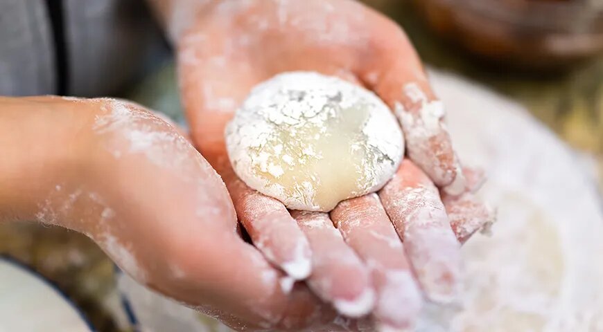 Форма моти создаётся просто: раскатать тесто в лепешки, добавив в центр начинку, и аккуратно завернуть. Традиционно используют сладкую красную фасоль, но современные варианты могут включать свежие фрукты, ореховые пасты или даже мороженое. Главное — следить за тем, чтобы начинка не вытекала.