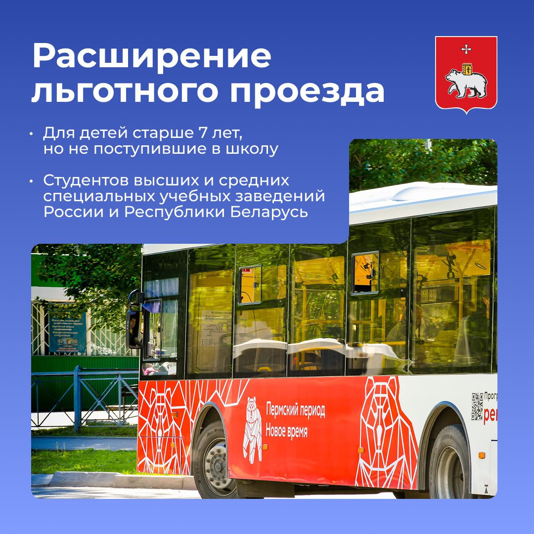 Кроме того, для студентов высших и средних специальных учебных заведений России и Беларуси, учащихся в других городах, волонтеров, членов студенческих отрядов и студентов из Перми, приезжающих домой на каникулы, теперь также предусмотрен льготный проезд на общественном транспорте.