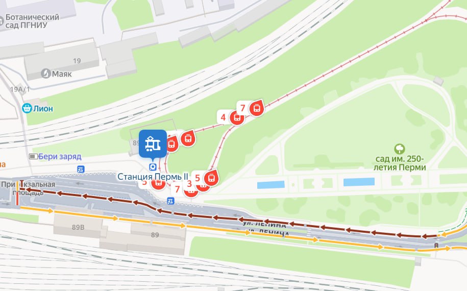 Трамваи застряли на конечной остановке у Перми-II. В соцсетях пишут, что один из вагонов сошел с рельсов.