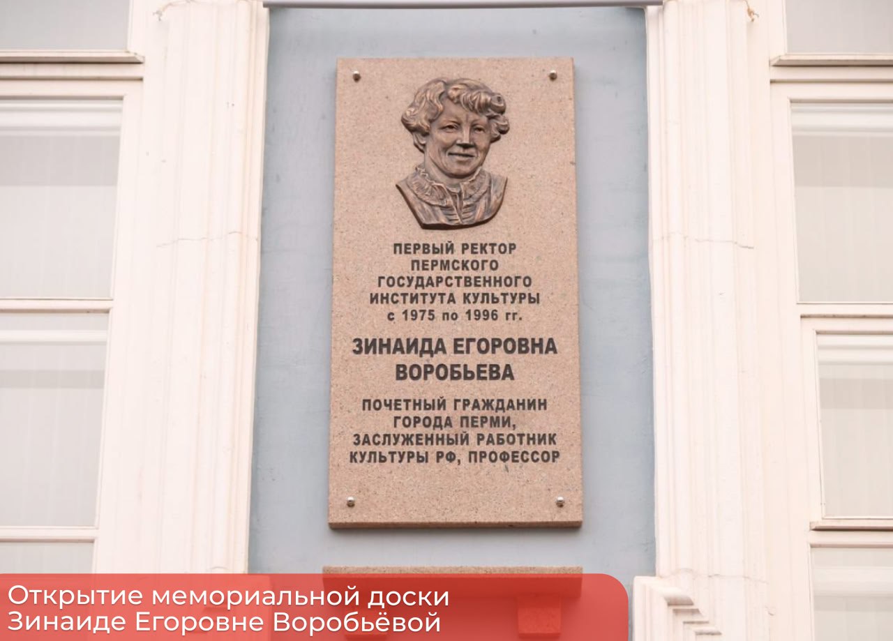 Сегодня в Перми появилась мемориальная доска первому ректору Пермского государственного института культуры, Почётному гражданину города Зинаиде Егоровне Воробьёвой.