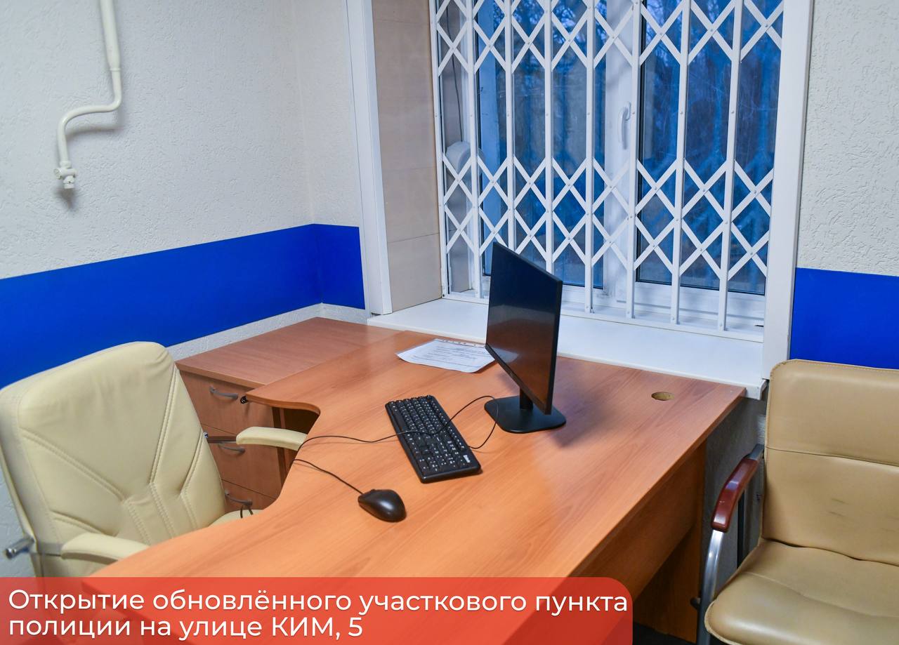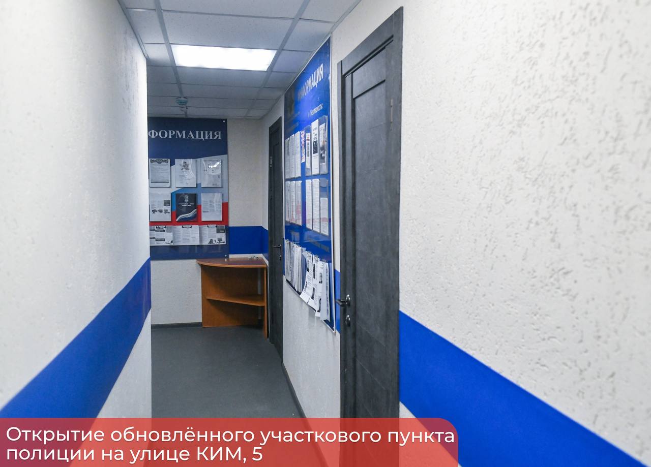 Открыли после ремонта обновлённый участковый пункт полиции на улице КИМ, 5. Это уже четвёртый обновлённый пункт в этом году — работы также завершены на Чернышевского, 3, Клары Цеткин, 23 и Мира, 63.