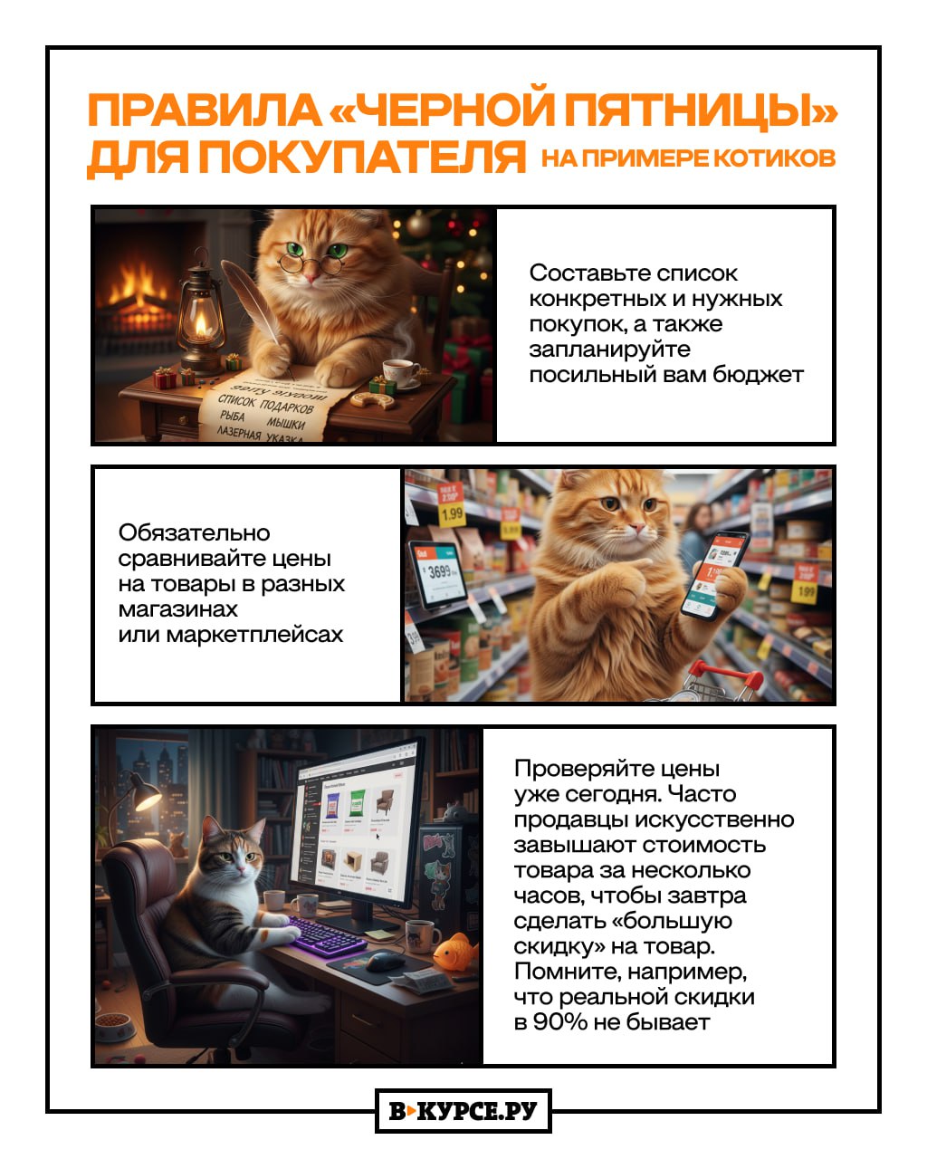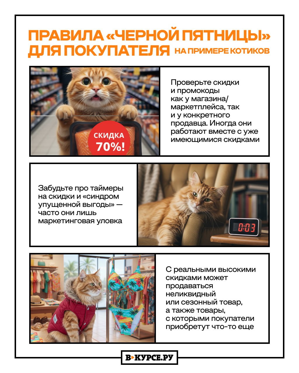 Котики «В курсе.ру» делятся важными советами, как сохранить свои деньги 28 ноября и закупиться с максимальной выгодой!