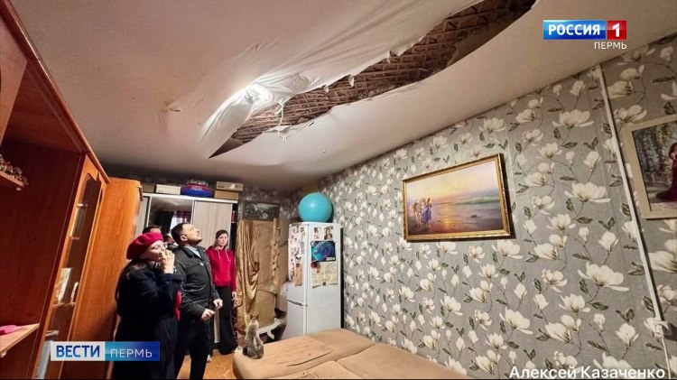Возможная причина обрушения потолка в квартире в Березниках - протечка труб теплоснабжения