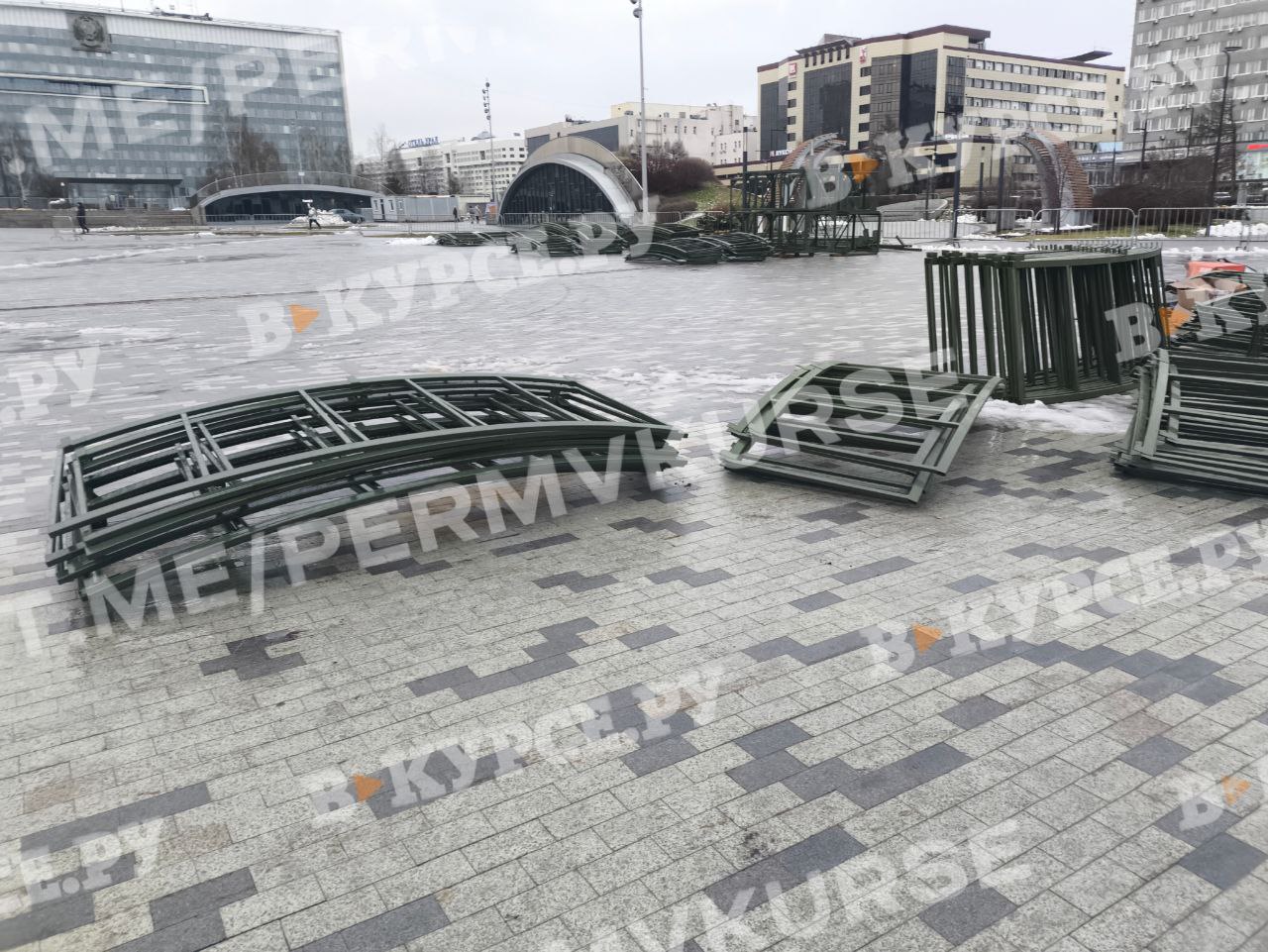 На эспланаде начали подготовку к сборке главной новогодней ёлки Перми